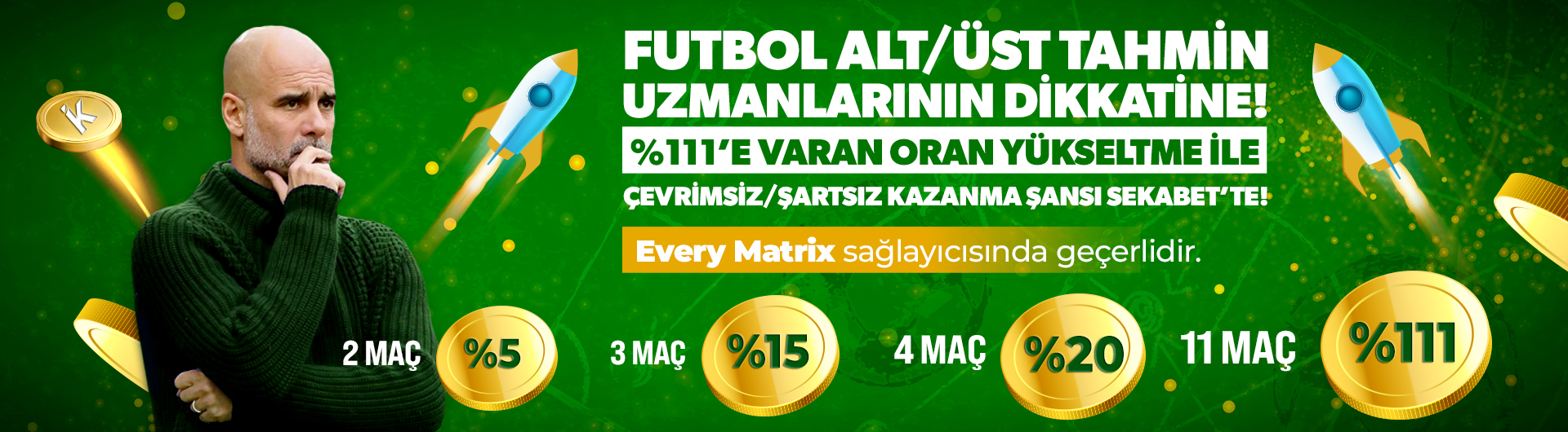✦ Futbolda maç sonu alt/üst tahminleri kombine bahislerinde, %111’e varan oran yükseltme ile çevrimsiz ve şartsız ödemeler kazanma fırsatın Sekabet’te!