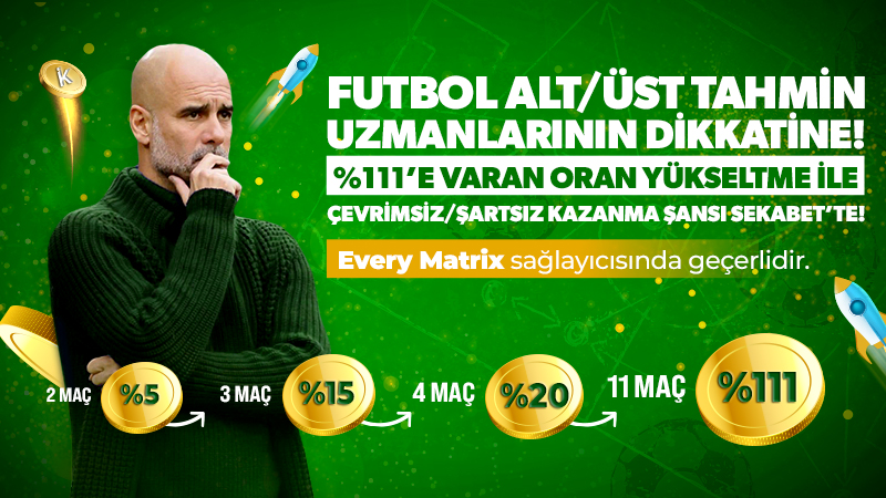 ✦ Maç sonu uzmanıyım hangi maçta kaç gol atılır ben bilirim, diyenlere %111 kazandıran bonus!